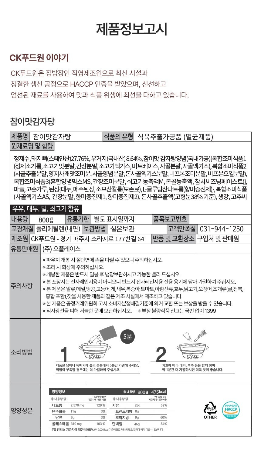 / [CHAMIMAT]排骨辣汤饭(常溫)/Pork Bone Hang over Soup/참이맛 감자탕 800g